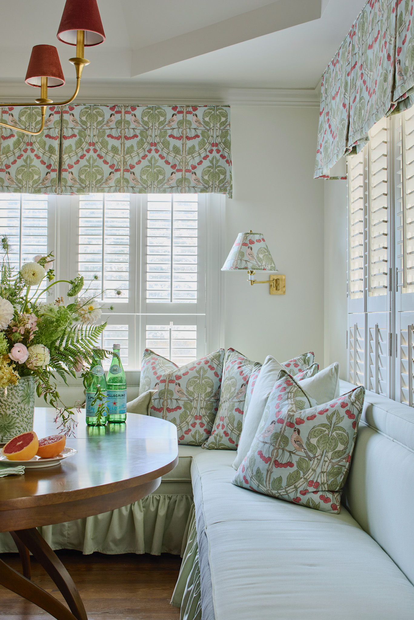From the traditional dining room to the pattern-filled primary bedroom, every space reflects thoughtful layers of texture and style. The secondary bedroom is playful and like a warm hug, while the kitchen breakfast nook and living room invite conversation and everyday ease. Together, these rooms tell a story of joyful design grounded in lasting appeal.