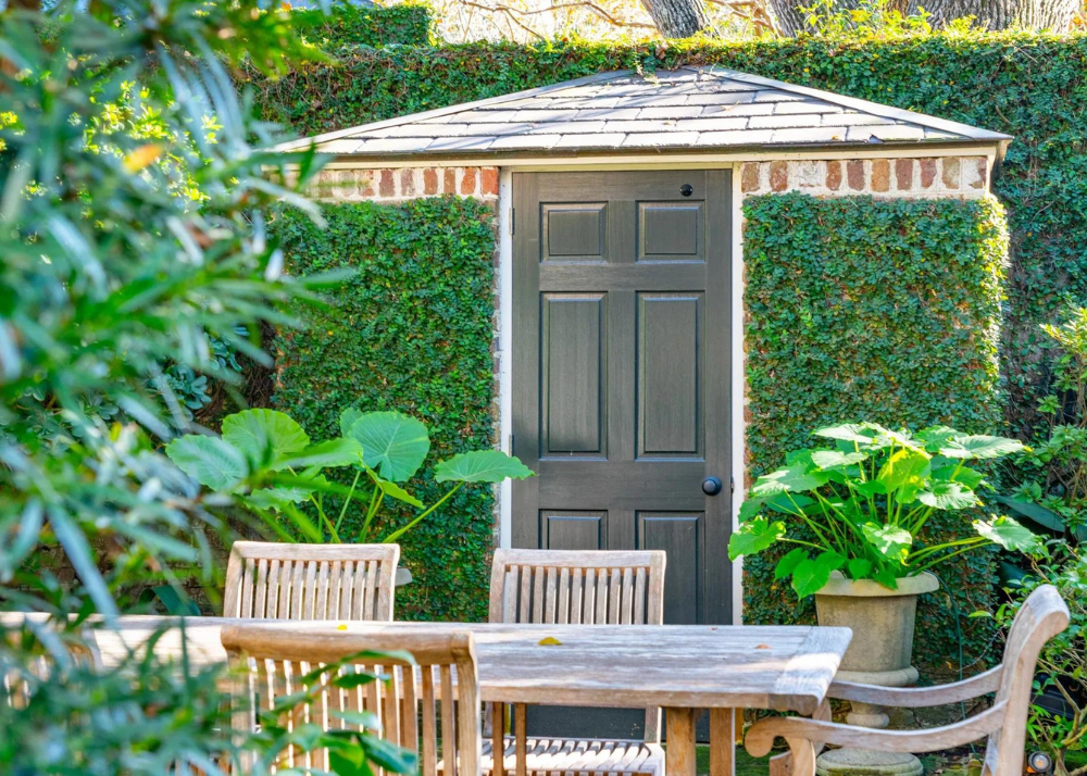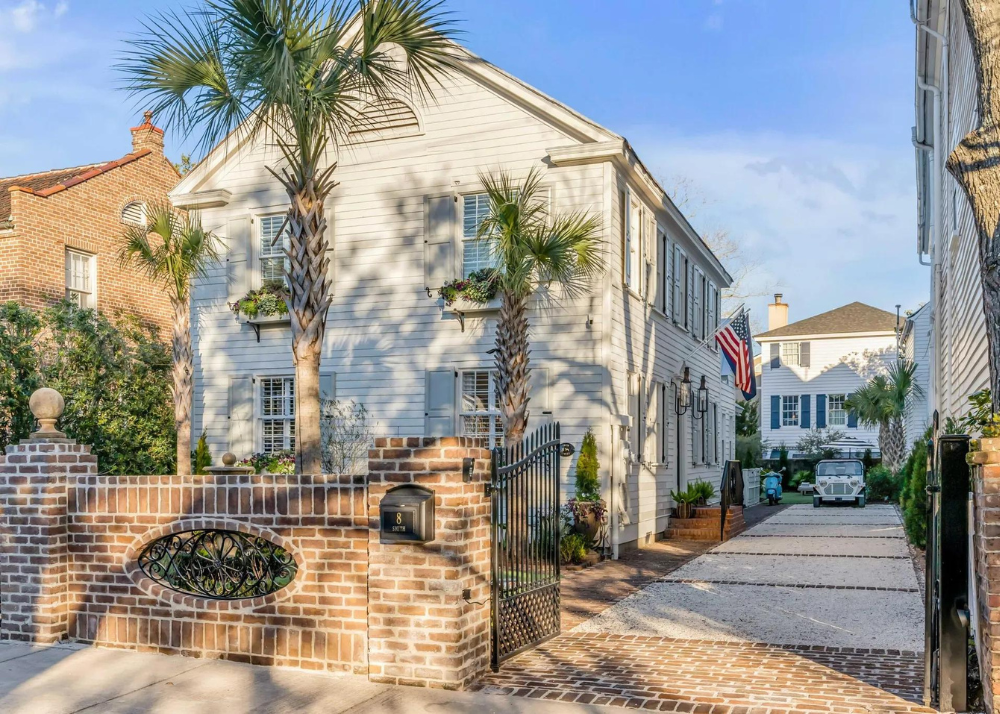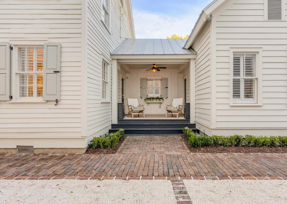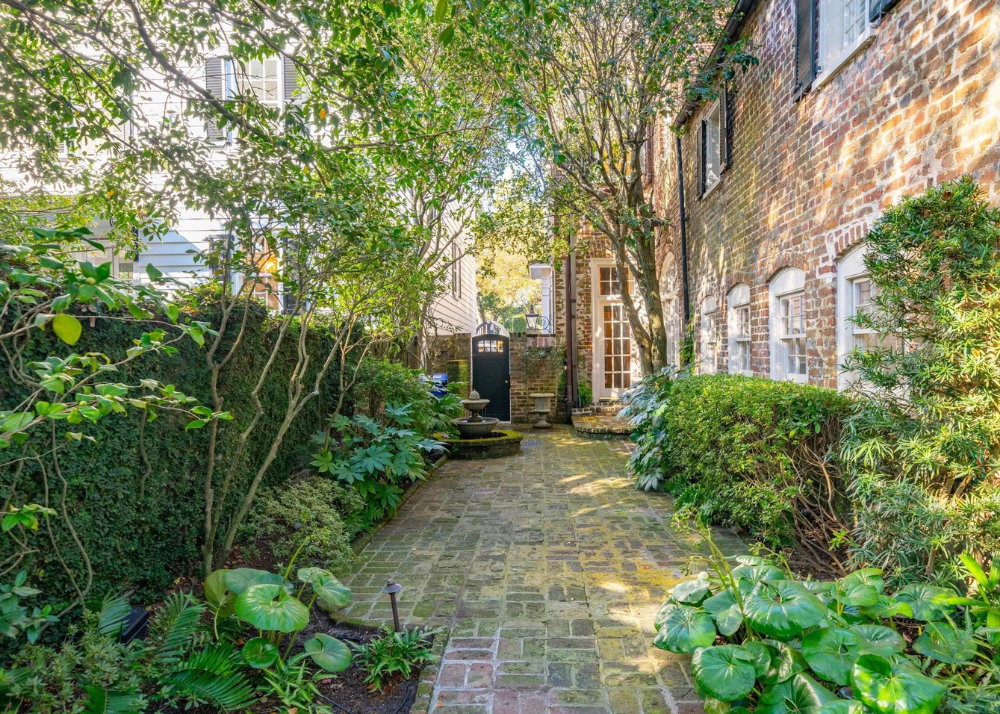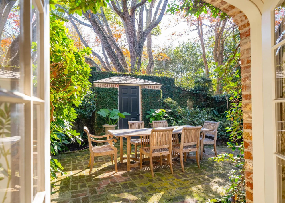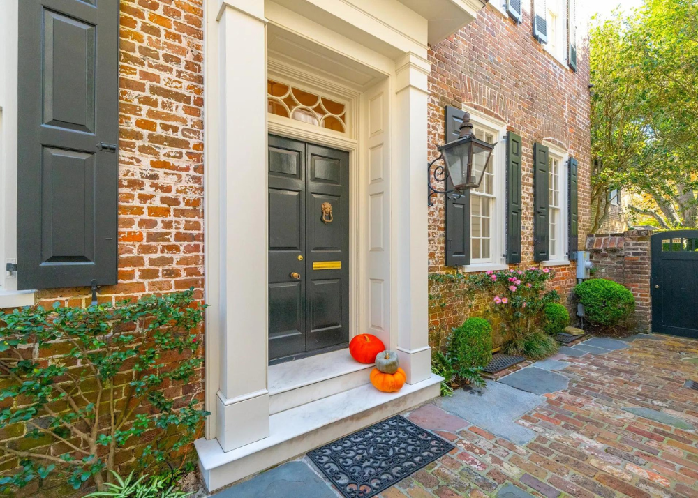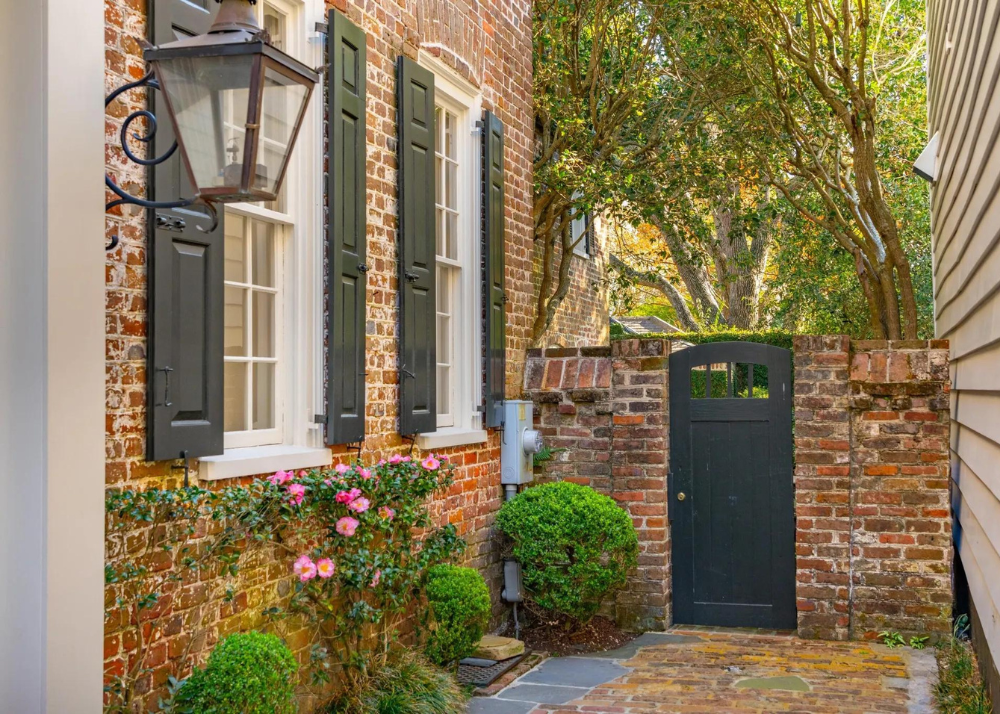 Built in 1772, this classic South of Broad townhome is the featured home for its simplicity of natural, aged brick and Charleston green trim and shutters and uniquely charming yet updated interiors (listing here)