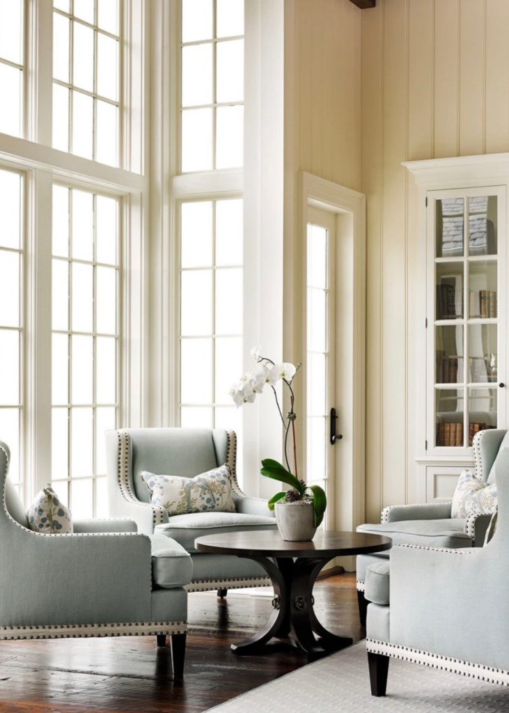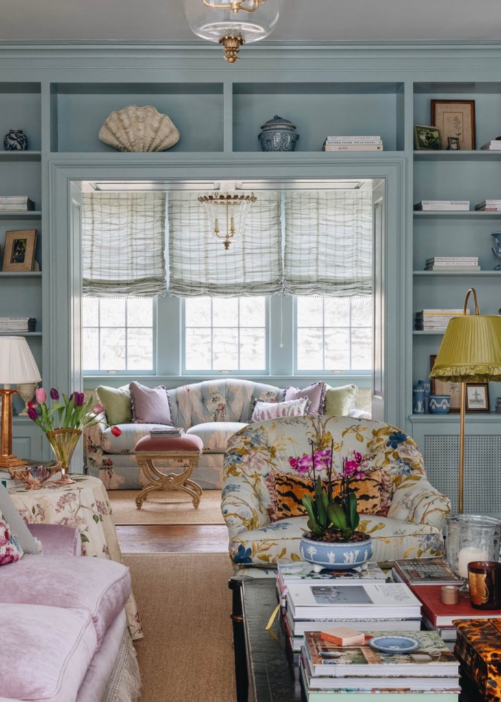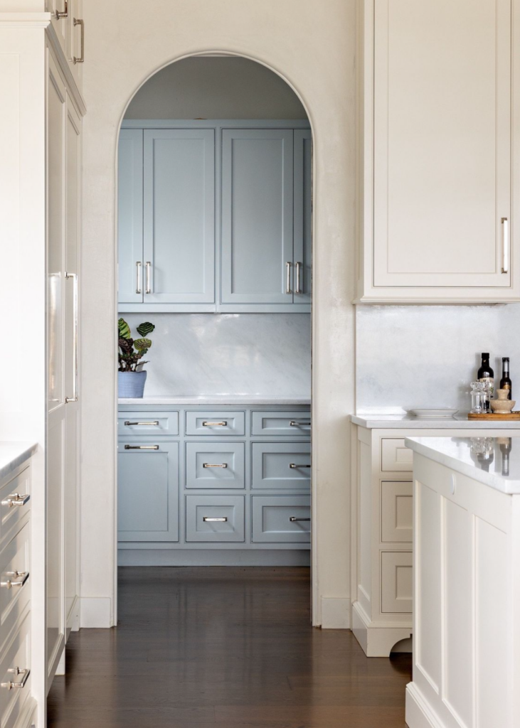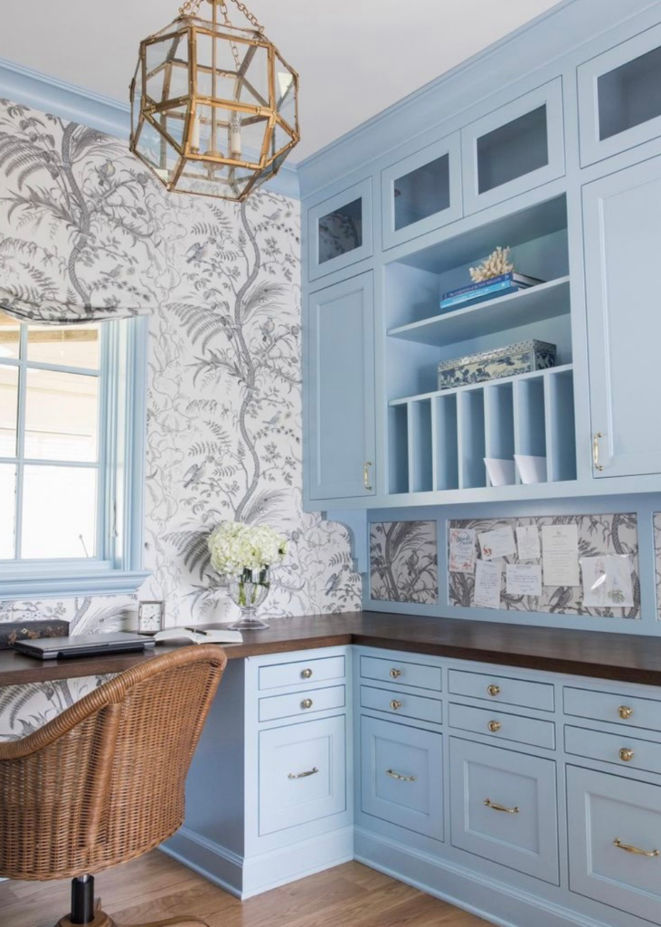 This Atlanta Southern home has high ceilings and an open floor plan but maintains a charming, intimate feeling thanks to the tongue and groove walls, blue haute ceilings and custom builtins. With light blue tones throughout, this home is giving me all the Spring feelings. You can find more images of this home on Mary Mac’s website.