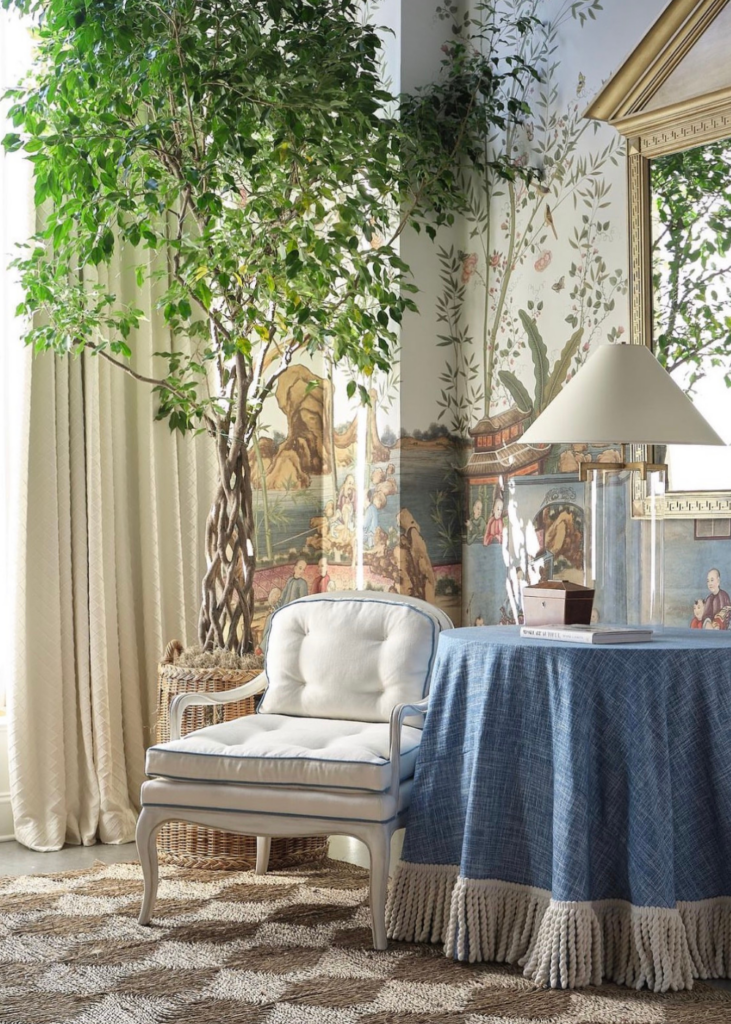 Atlanta-based interior designer Mary Mac Interiors is known for her traditional style with large print fabrics and a Southern flare. I toured a beach home on the marsh of Sea Island, GA that she decorated with ocean blues throughout. You can find the home tour here.