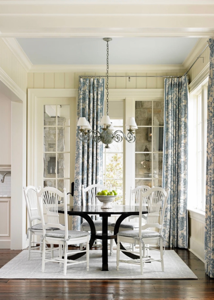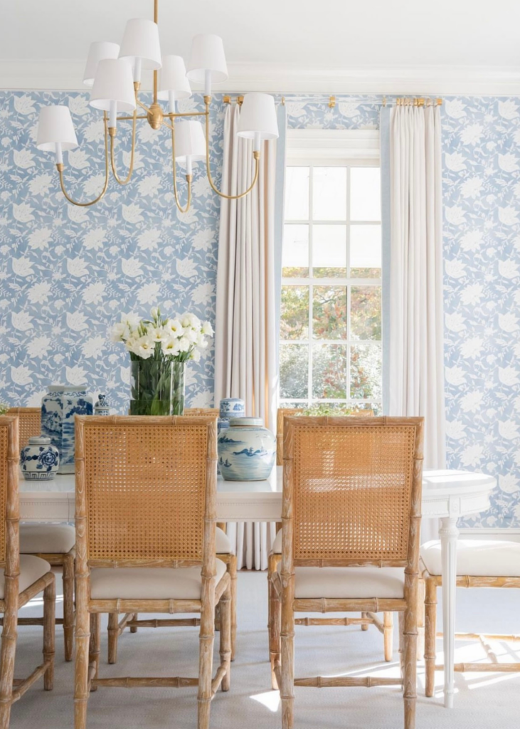 Blue can be a cheery, less formal backdrop to a room where dinners are enjoyed, moments are celebrated and Sunday suppers make a welcomed comeback.